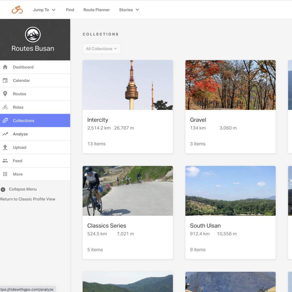 Check out the Routes Busan RideWithGPS page and organize your favorite rides the way you like!