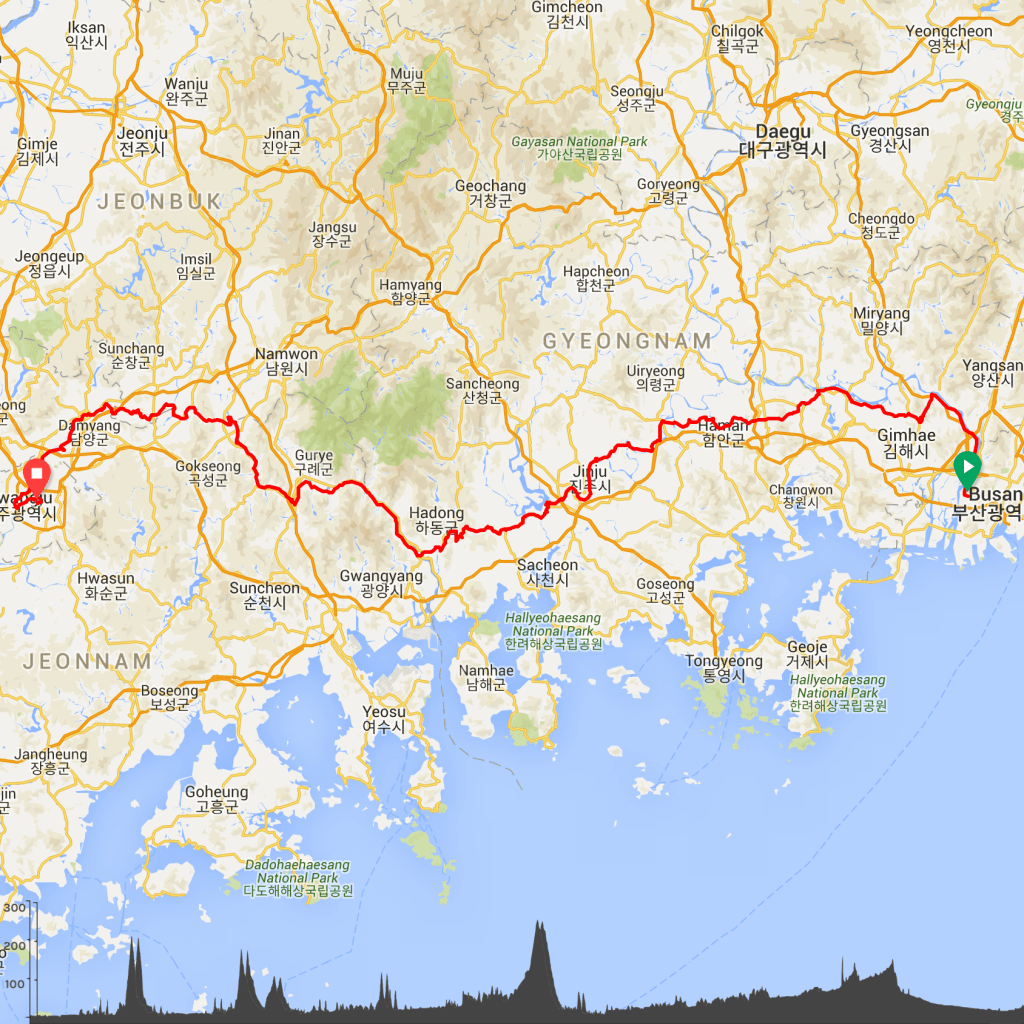 광주는 한국 역사에서 매우 중요한 역할을 하는 도시입니다. 80년대에 시민들이 정부에 맞서 투쟁하며 민주주의를 쟁취해낸 곳입니다. 광주와 광주 주변에서 구경하고 할 수 있는 것들이 정말 많이 있지만 무엇보다 전라남도의 섬진강 자전거길을 따라 라이딩을 하는 것은 아름다운 장관과 함께 하는 최고의 경험일 것입니다. 조금 더 어려운 코스를 원하거나 시간여유가 있다면, 루트에서 벗어나 지리산을 통해 남해 부근까지 가보는 것을 매우 추천합니다.