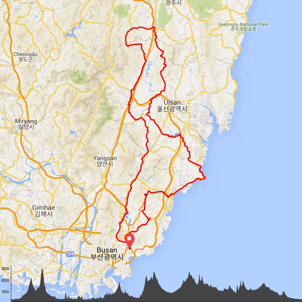 Another new Korea Randonneurs permanent in the area: Baby Yoda takes you along the rocky East Coast up to quiet and remote country lanes on the North of Ulsan and Gyeongbuk. This permanent brevet starts right in the heart of Busan – at the MikeBike shop on the Suyeong River, across the street from the bike path where many other Routes Busan routes start.
